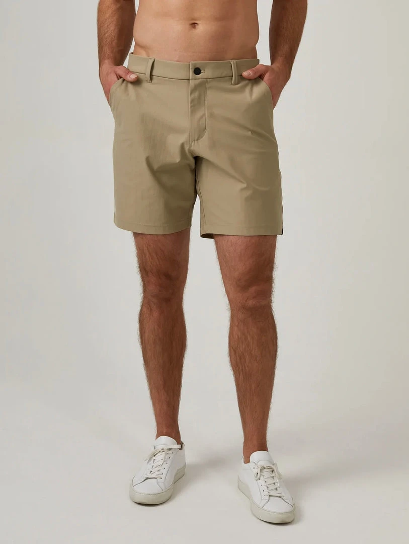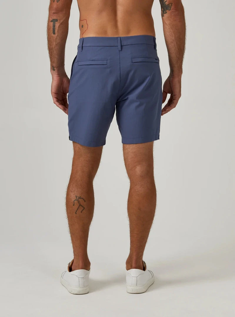 Our fashion forward 7″ chino short is made in our Linear Flex® technology fabric. Designed with a back pocket hidden zipper, and two stylish functional zippers on the front to hold all of your valuables. This highly versatile short will keep you comfortable, functional, and looking polished.
