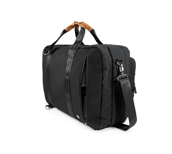 The Trenton convertible backpack | messenger is a short haul dream. Hidden backpack straps are easily accessible when needed and the clean look of the Trenton compliments any outfit. Designed with a separate and fully functional messenger bag on one side, combined with a main compartment garment section and two additional accessories pockets on the outside, one or two day overnight trips were never easier! Includes trolley strap for rolling luggage and adjustable padded shoulder strap.