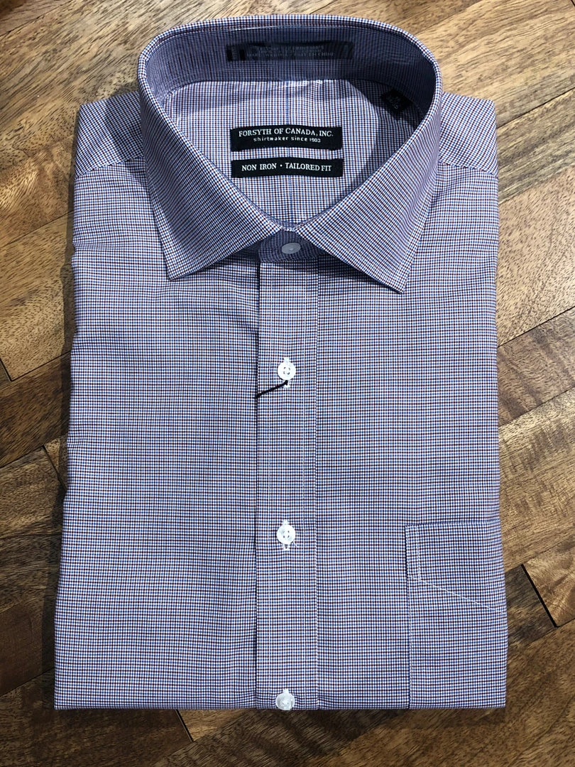 Long sleeve dress shirt. Point collar, Non Iron, Tailored fit, front pocket.