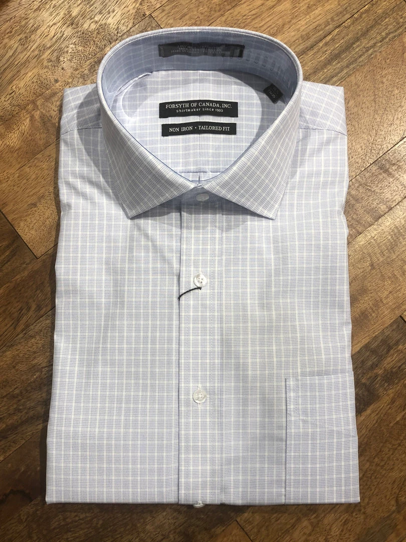 Long sleeve dress shirt. Point collar, Non Iron, Tailored Fit, front pocket.