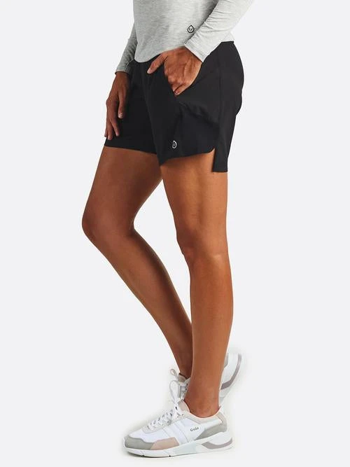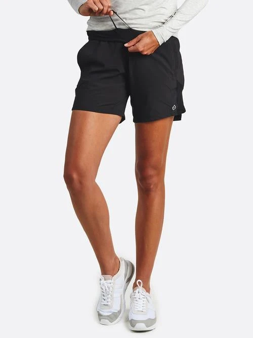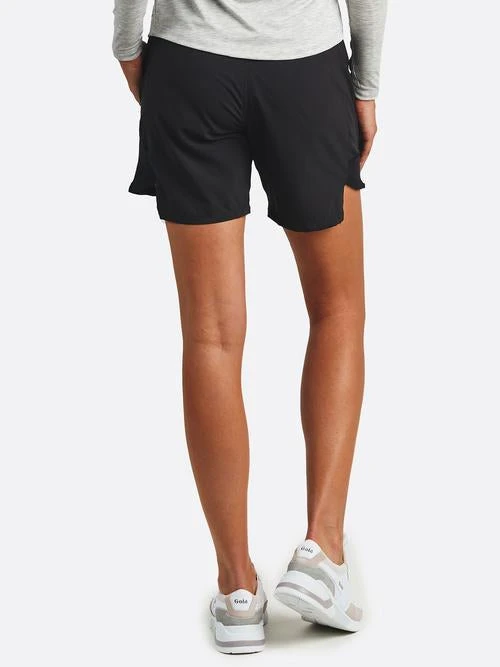 Relaxed fit, Featherweight stretch woven body, Wide waist band with infinity draw cord, Inner crepe liner, Side pockets, 7″ inseam