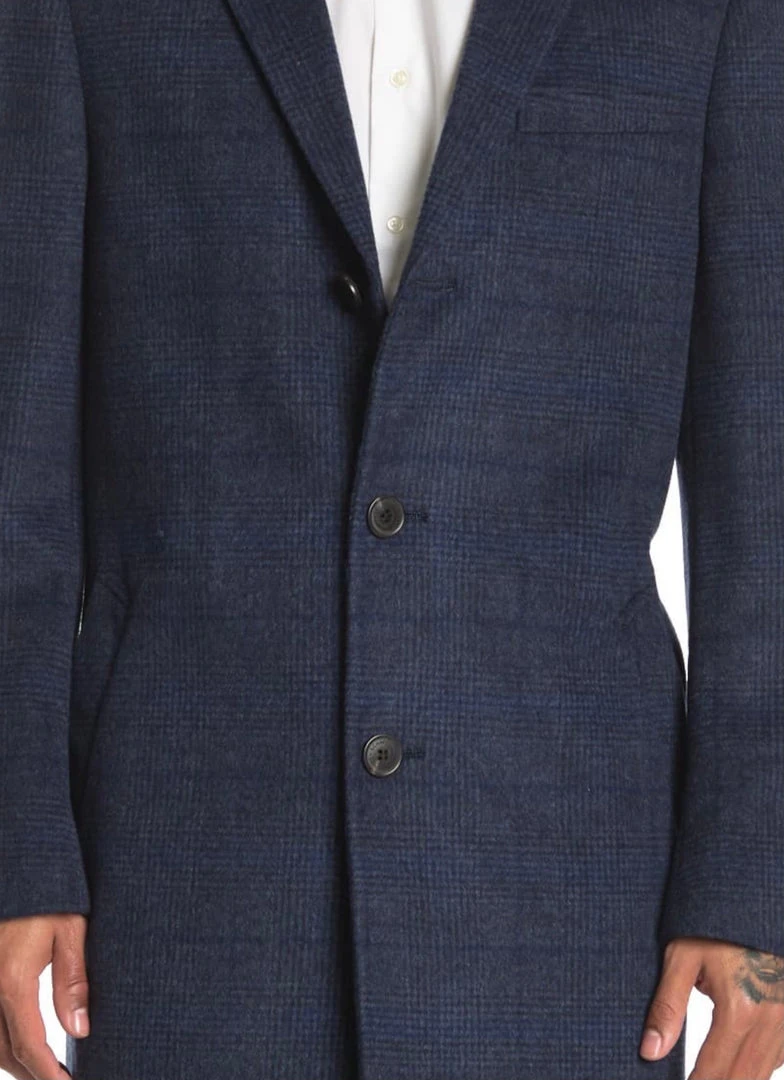 A gorgeous tonal plaid wool blend construction completes this stylish coat.