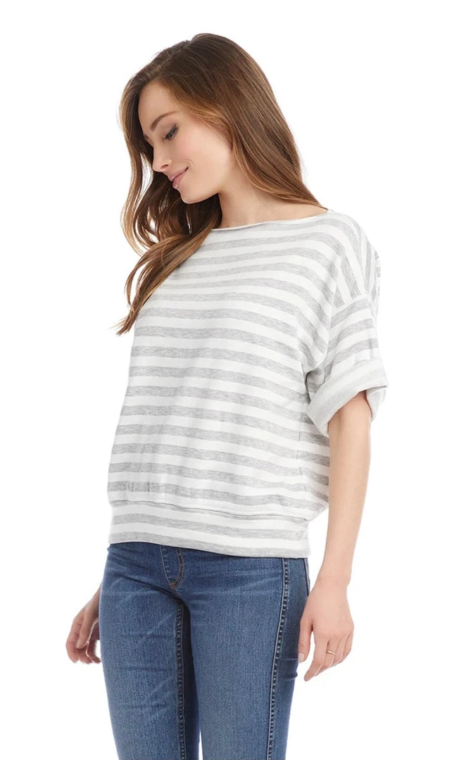 - Its simple boat neckline, timeless stripes, and super soft fleece fabrication creates a clean, minimalist aesthetic.