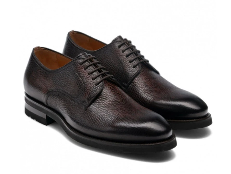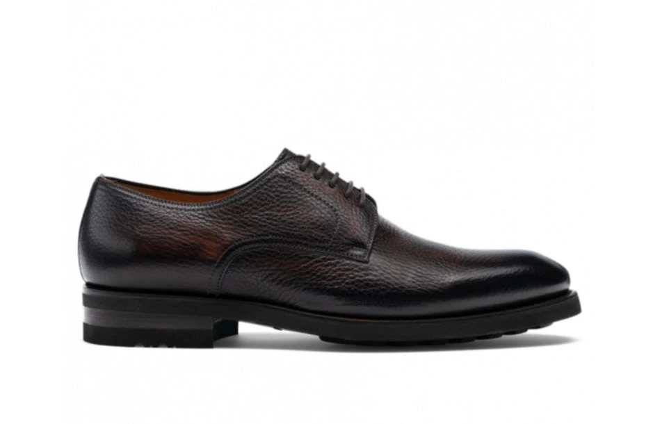 The Melich II Brown is a smart-casual derby crafted in a very soft Rugo leather. The plain toe derby is combined with a mini-lug rubber sole, and can easily transition from office to evening with comfort and ease. Bologna construction wraps the foot in leather creating unrivaled flexibility; and the shoe features an additional footbed cushion for increased comfort. Handmade in Spain.Â