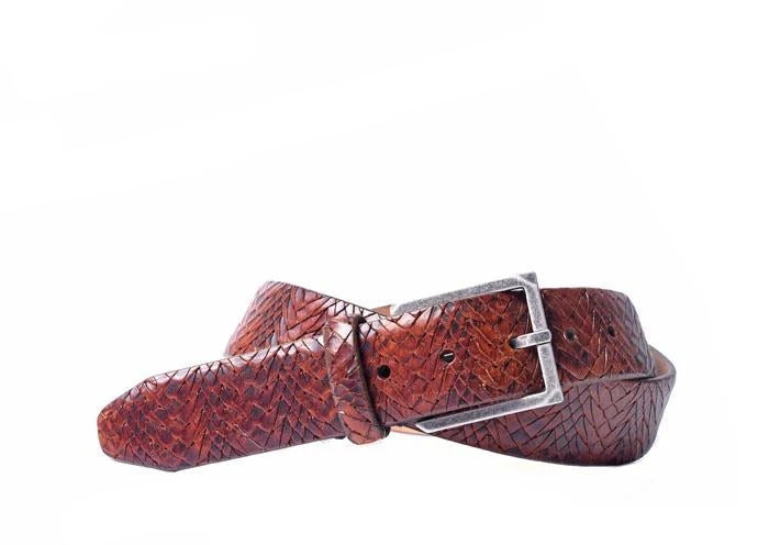 - 1 3/8” Antique Basket Weave Italian Saddle Leather Strap