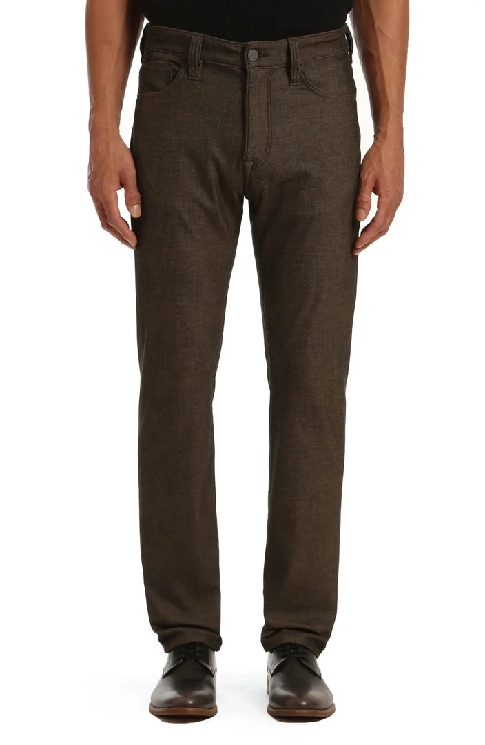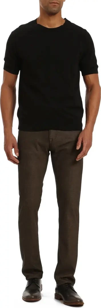 A slim straight leg styles these smooth shape-retaining jeans done in a dark earthy brown that can be styled up or down.