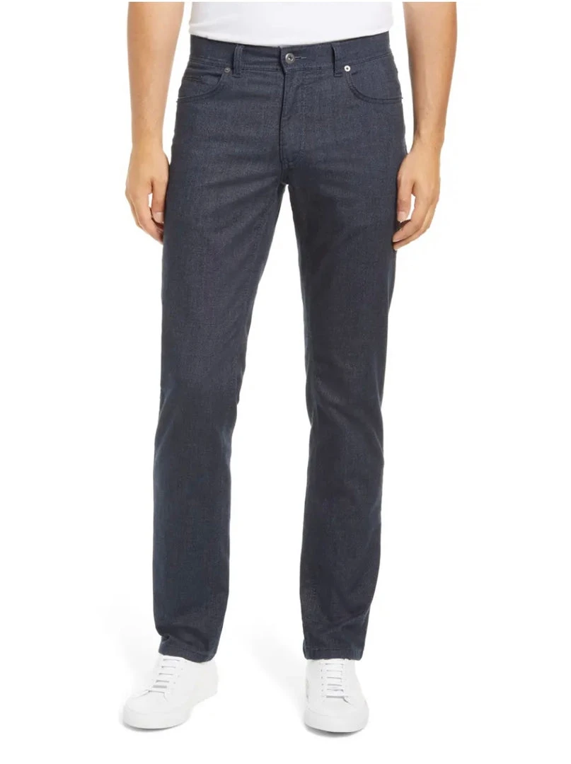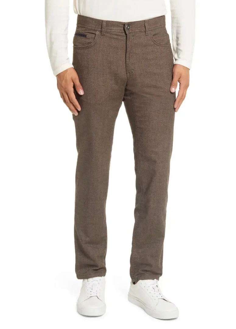 Dark coloring and a classic straight-leg fit give you a smart alternative to everyday denim in sporty five-pocket pants tailored from a stretchy cotton blend.