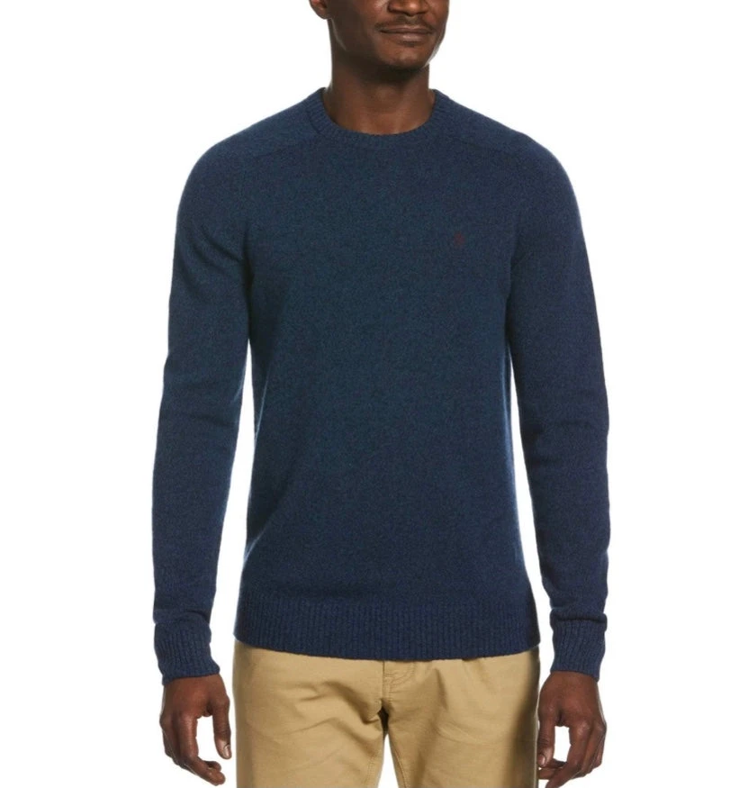 Keep warm while looking cool in this Original Penguin men’s crew neck sweater. Crafted from 100% lambs wool, this long sleeve sweater is super soft and cozy. A versatile solid men’s pullover sweater, it pairs perfectly with your favorite chinos or jeans for a seamless transition between day and evening looks.