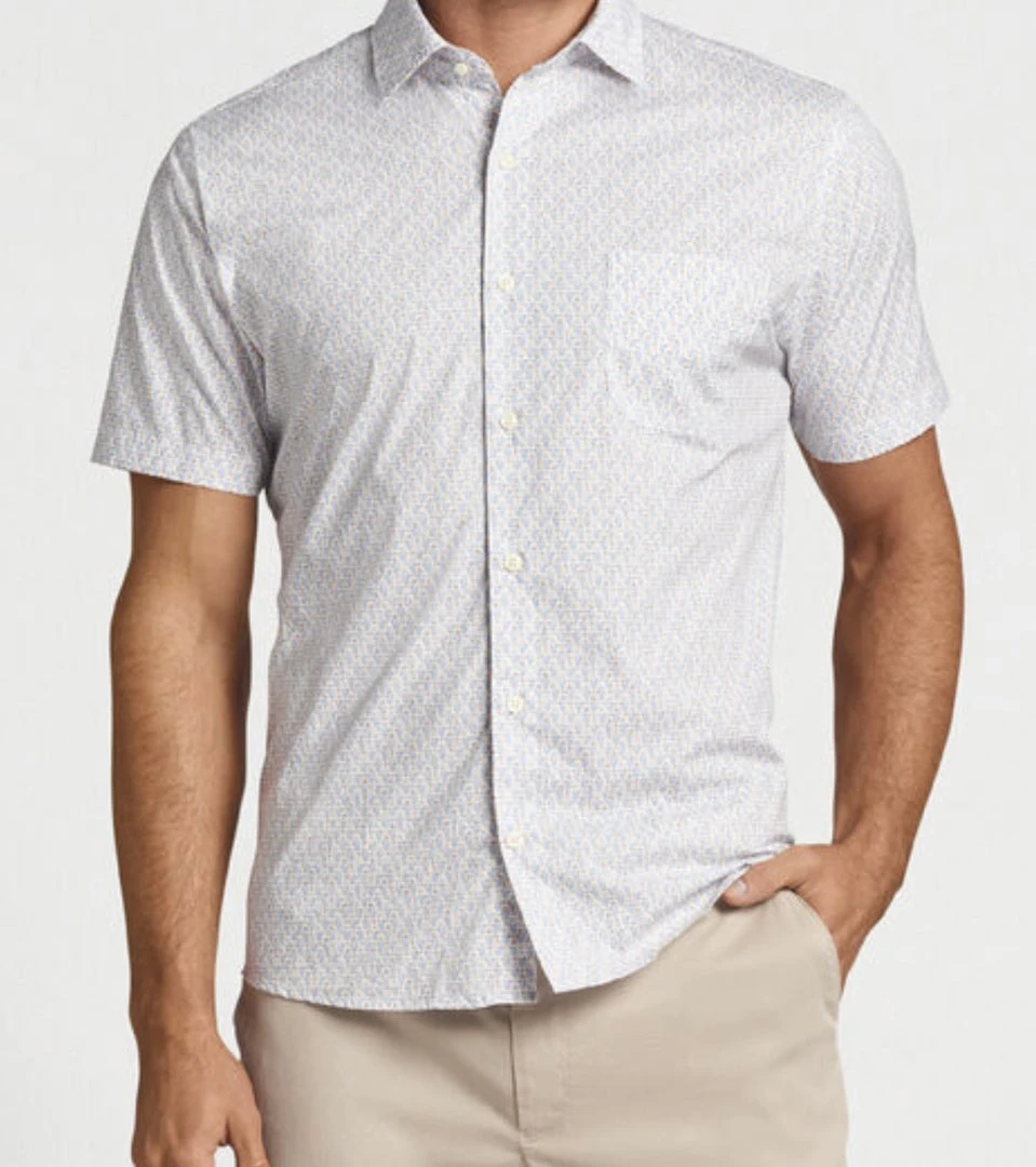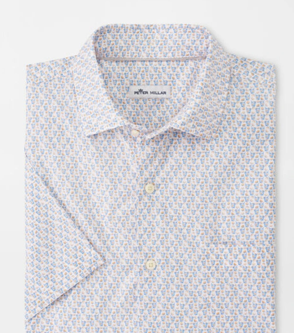 Embrace a coastal sensibility in this laid-back sport shirt, featuring a custom cocktail print hand-designed in our Pilot Mill studio. Constructed from a soft cotton blend, this style has a lived-in feel and a hint of stretch. It’s finished with a spread collar and a French placket.
