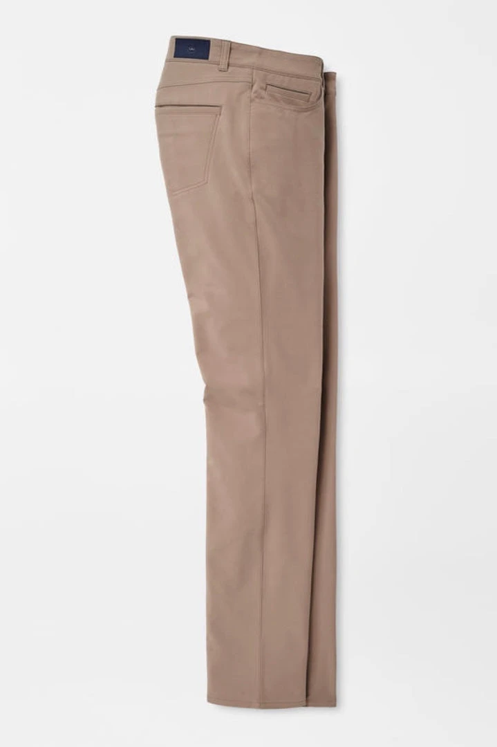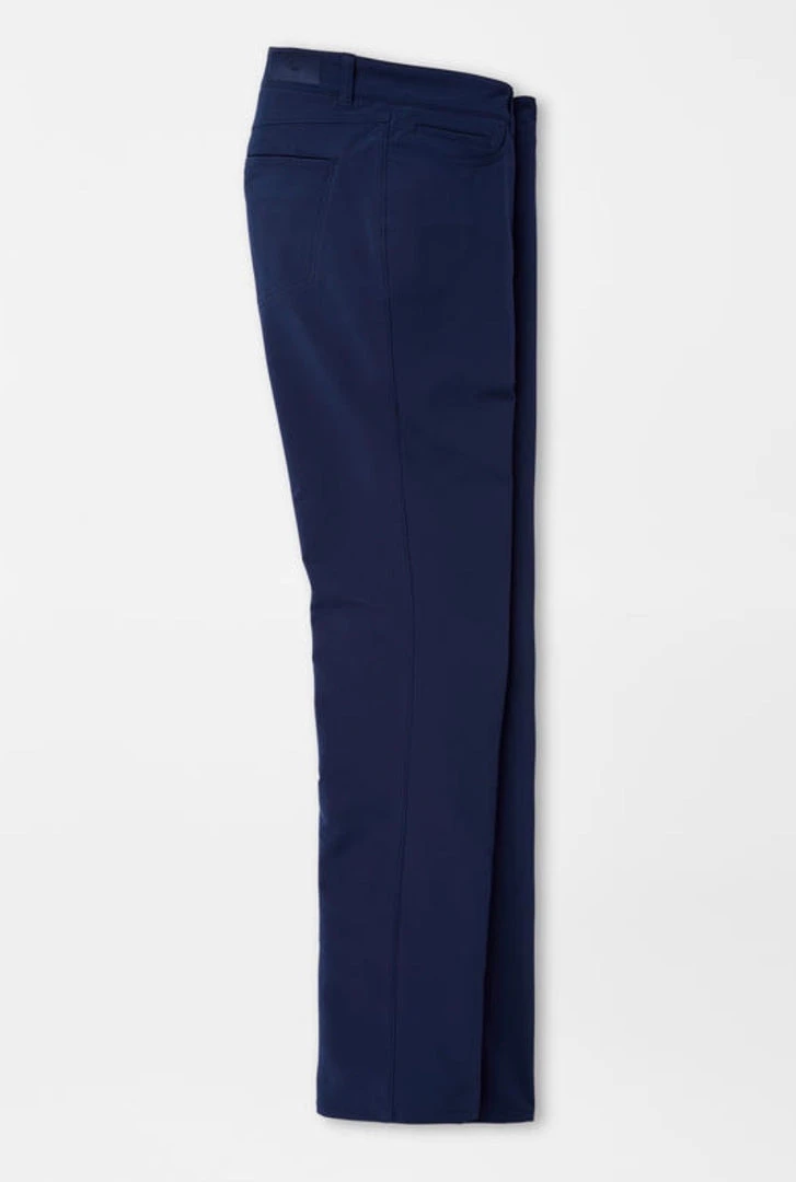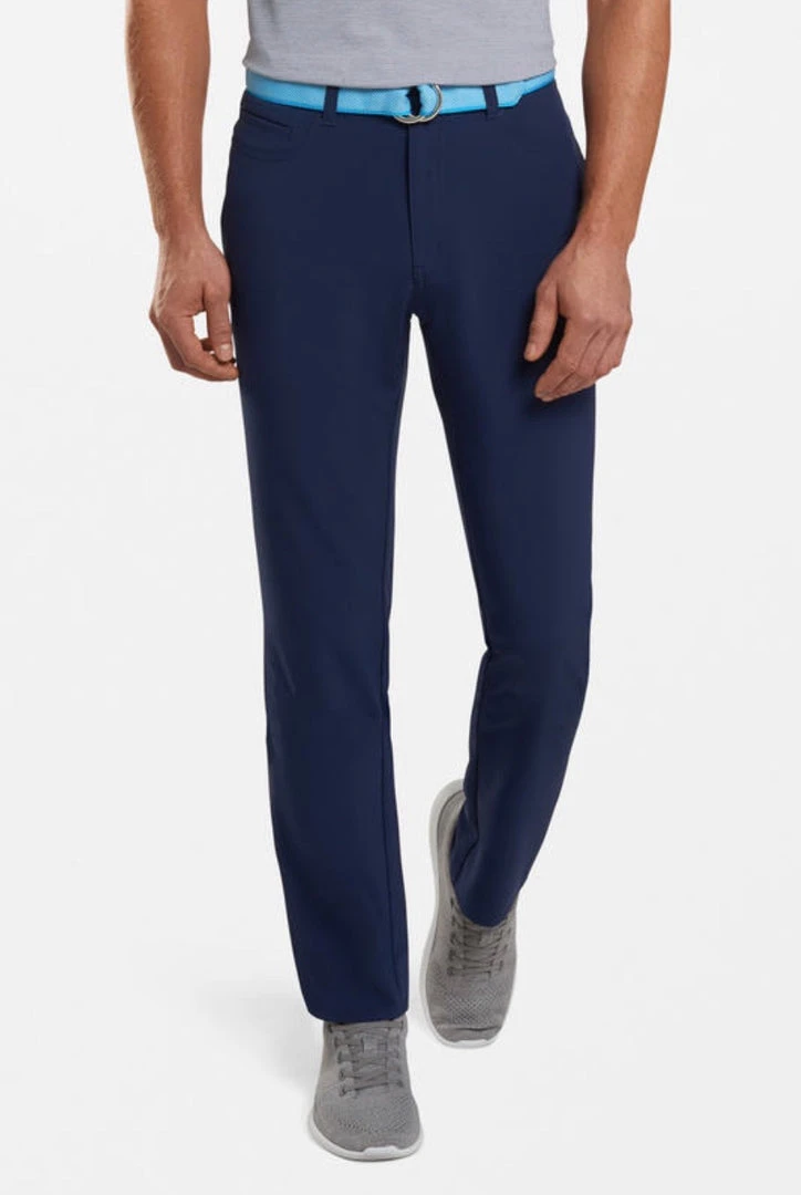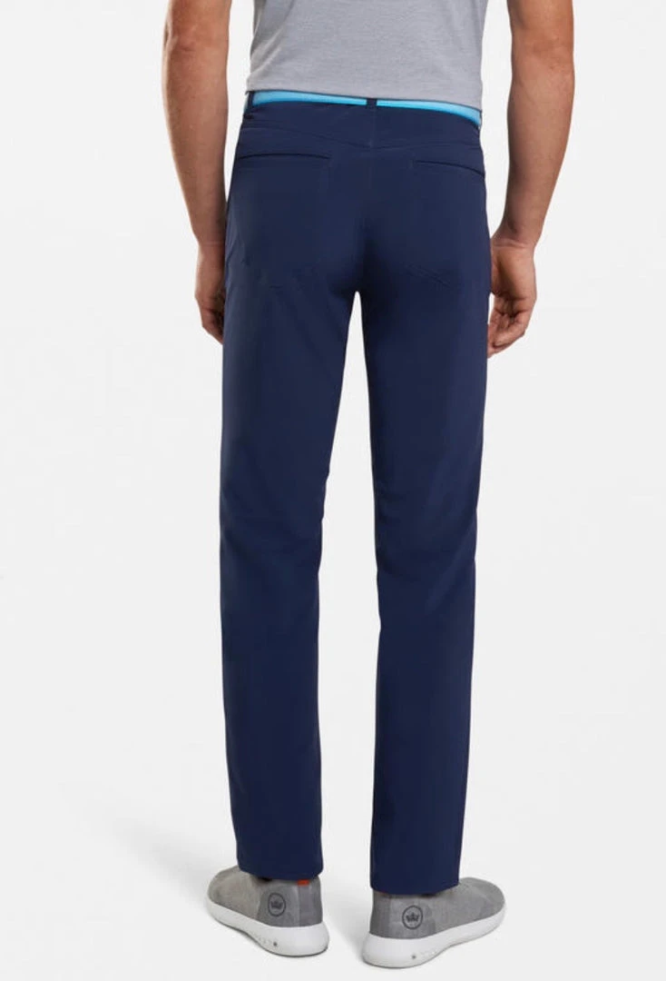 An embodiment of the Crown Crafted design ethos, the Kirk Five-Pocket Pants were developed to outfit the most discerning golfers. They’re constructed from premium performance double-weave fabric that offers benefits like four-way stretch, water resistance, moisture-wicking, quick-dry and easy-care. The silhouette is comprehensively trimmer than Crown Sport offerings employing a subtly shorter rise and a narrower fit in the thigh, knee and leg opening. Finished with a heat seal rubber back patch and a rubberized Crown Seal button closure.
