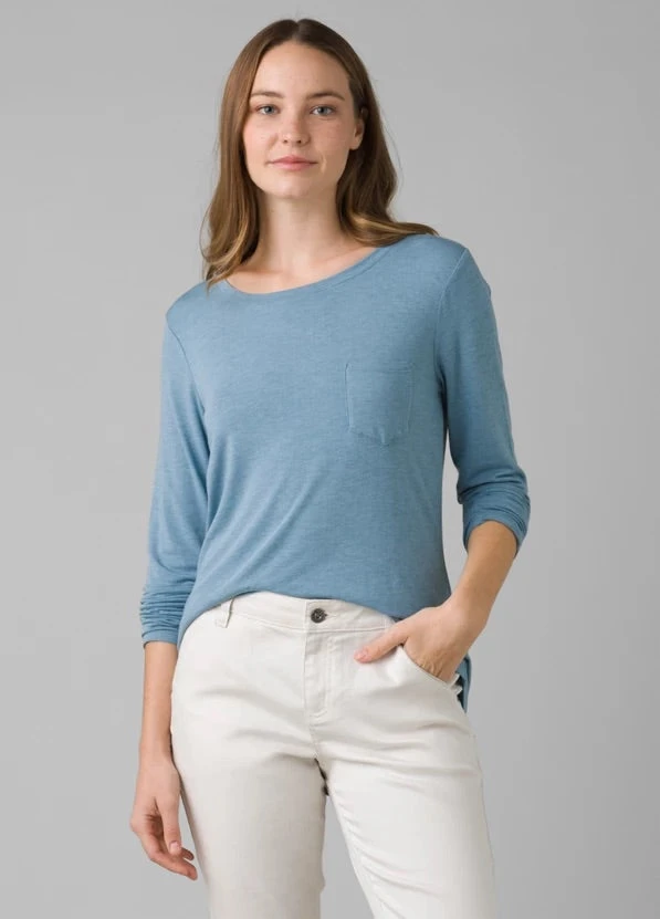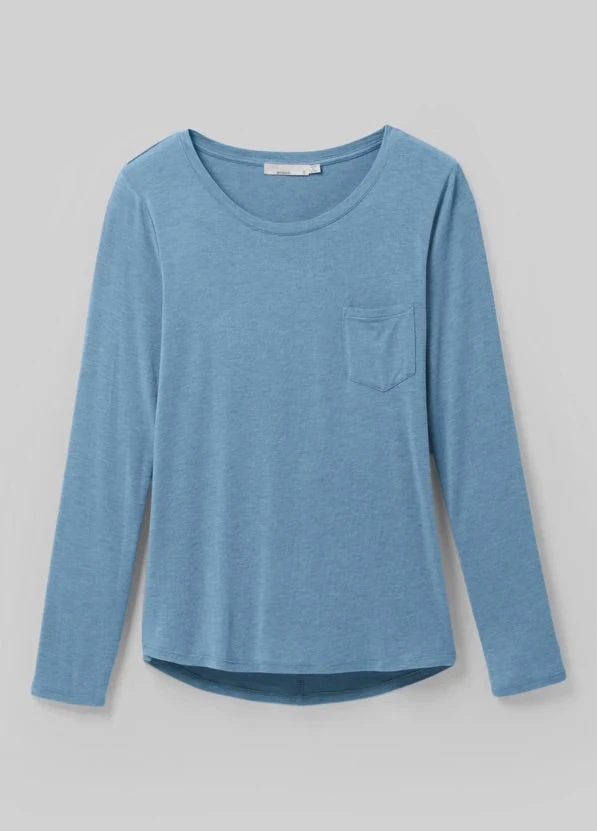 - Crew neck long sleeve pocket tee silhouette with back seam details