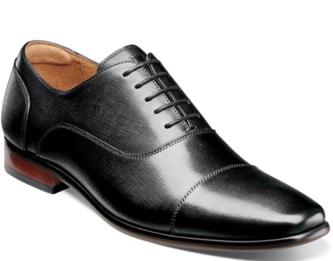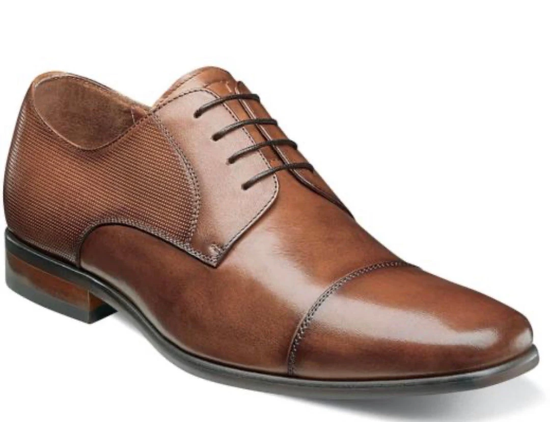 The Florsheim Postino Cap Toe Balmoral Oxford’s sleek profile gives it a modern air that is further enhanced by the textured scratch print leather upper and stacked heel. And with its rubber sole with Flexsole technology it also delivers out-of-the-box comfort.