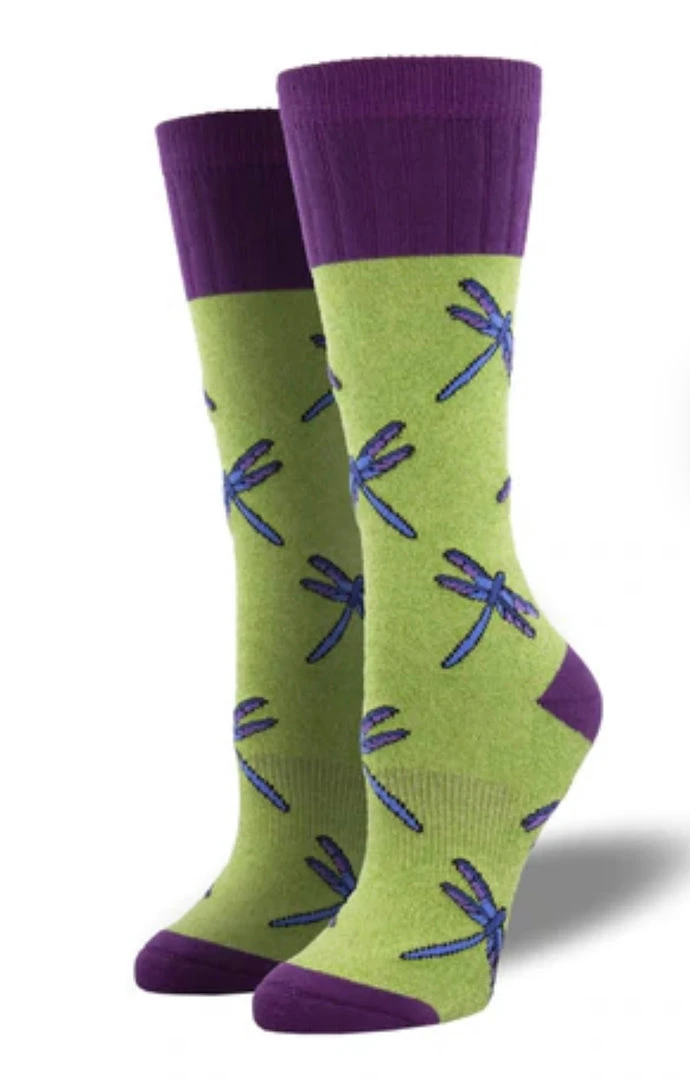 Did you know having a dragonfly land on your head means good luck? OK, so riddle me this. What does it mean if this pair of dragonfly socks lands in your cart?