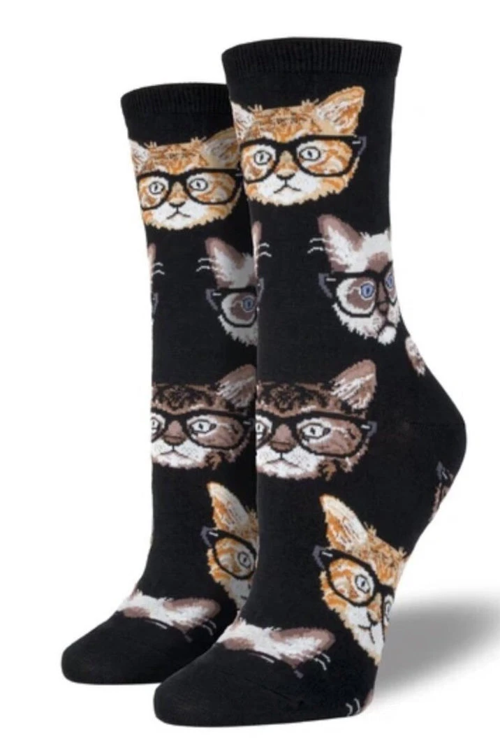 Your feet are sure to purr when wearing these kittenster socks. Featuring a fun repeat pattern of cats wearing glasses, these socks are sure to help show off that cat love!