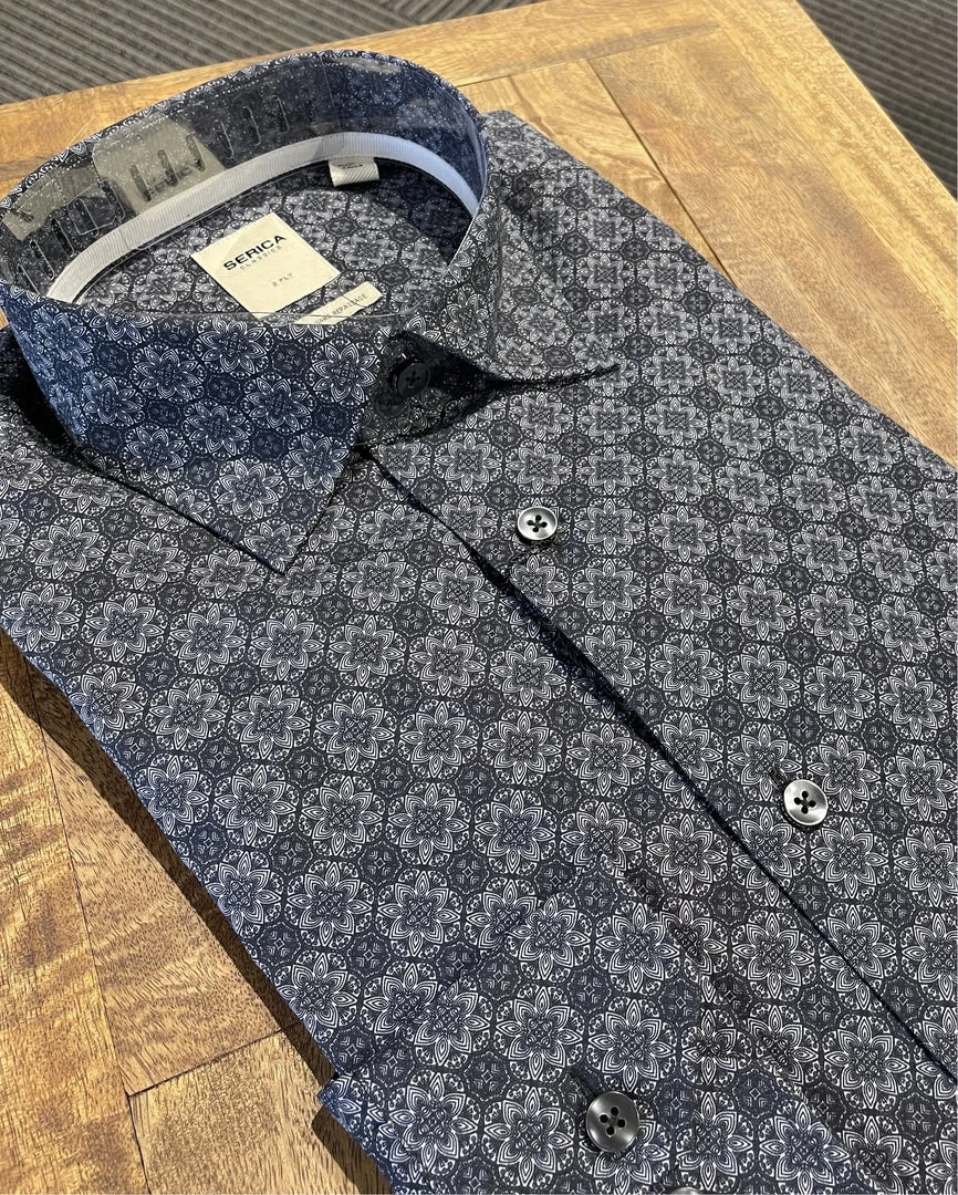 Sport Shirts Serica Charcoal Print Sport Shirt