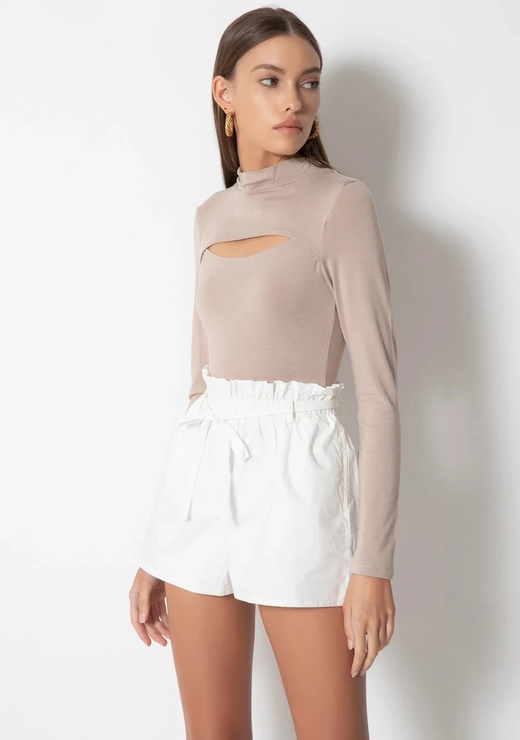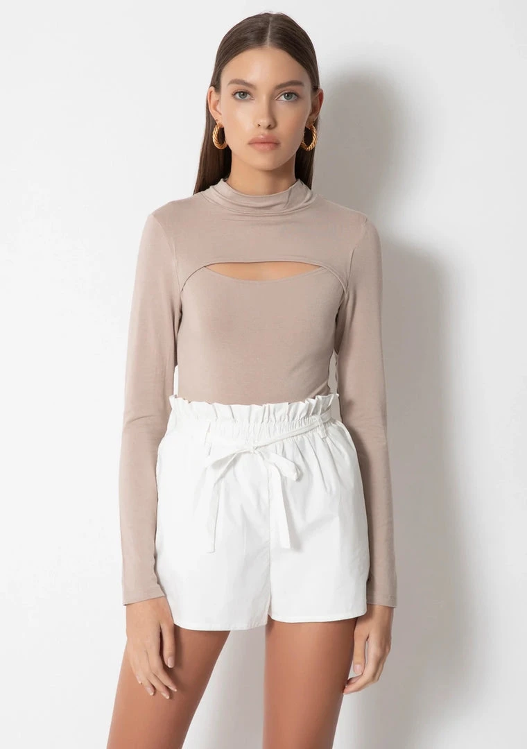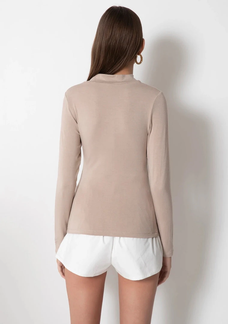 A perfect basic with something extra, the Johnnie Top is your favorite mock neck long sleeve tee with an ultra sexy cutout at the front.