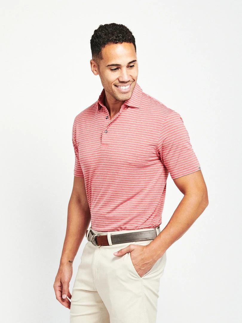 Our Men’s Cloud Golf Polo utilizes ultra-fine fibers to combat pain points of the modern performance polo for a wearing experience like no other. Say goodbye to your average polo and turn heads at all 18 holes. We’ve set a new industry standard. Quick drying and odor resistant qualities are enhanced by state of the art sun protection.