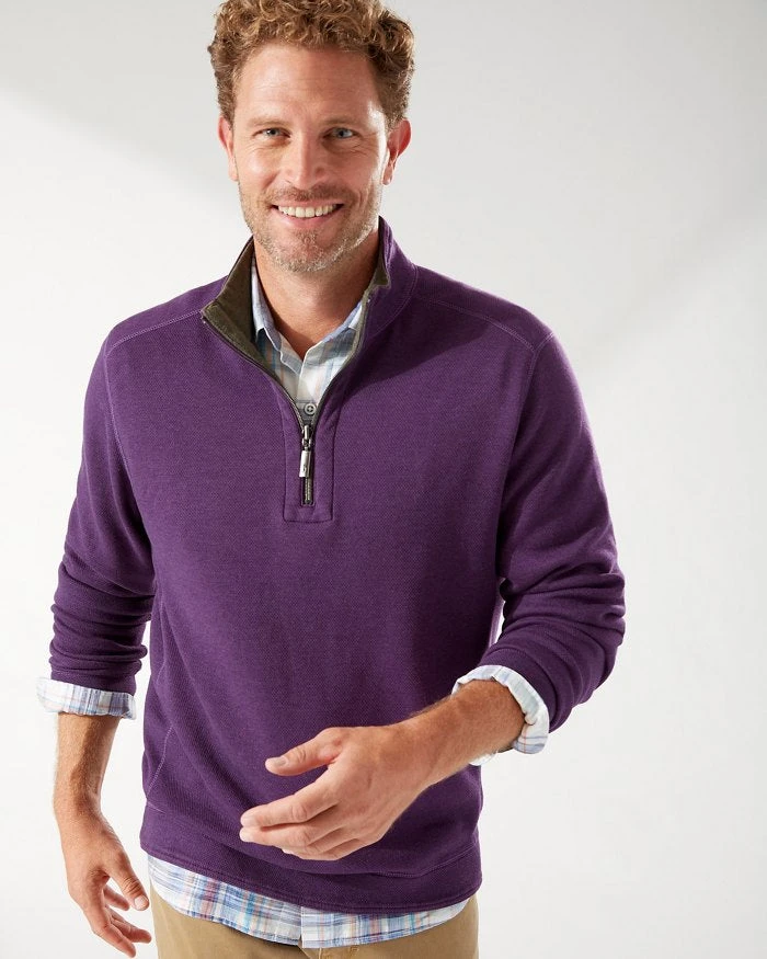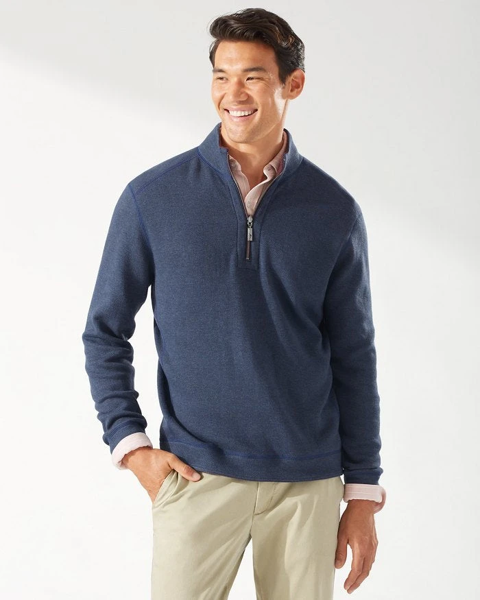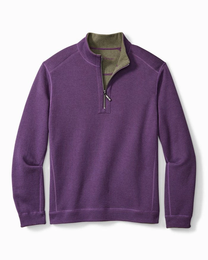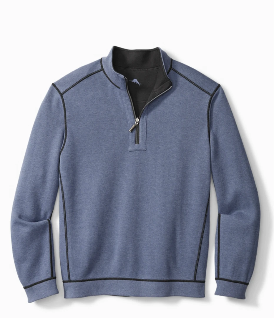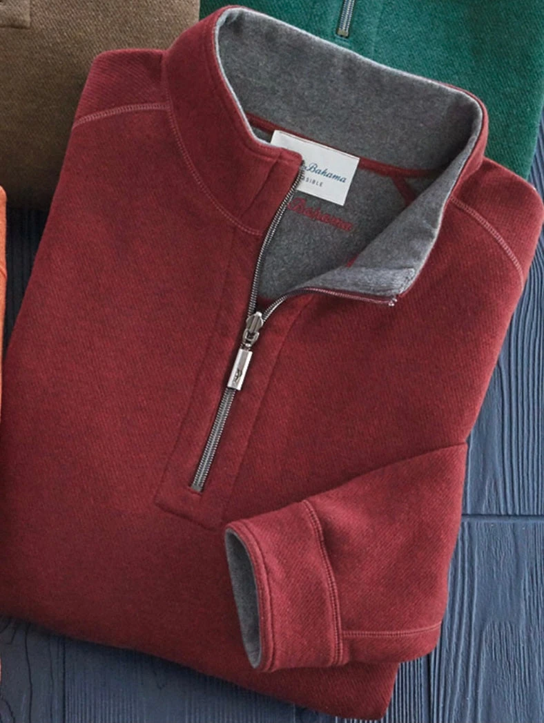 - Reversible half-zip pullover.