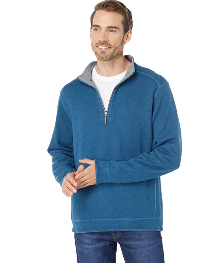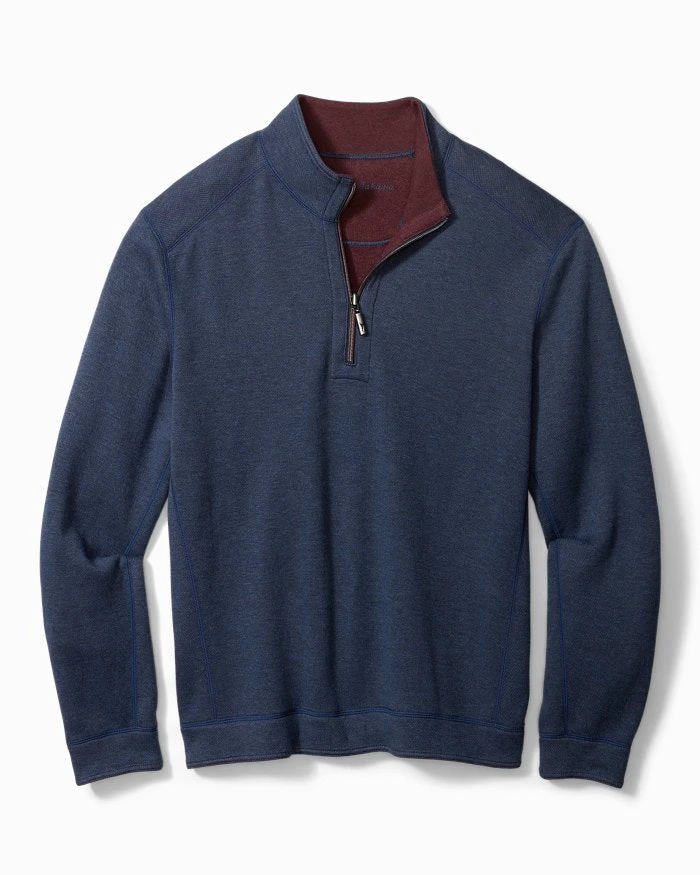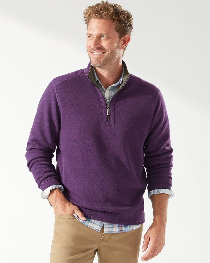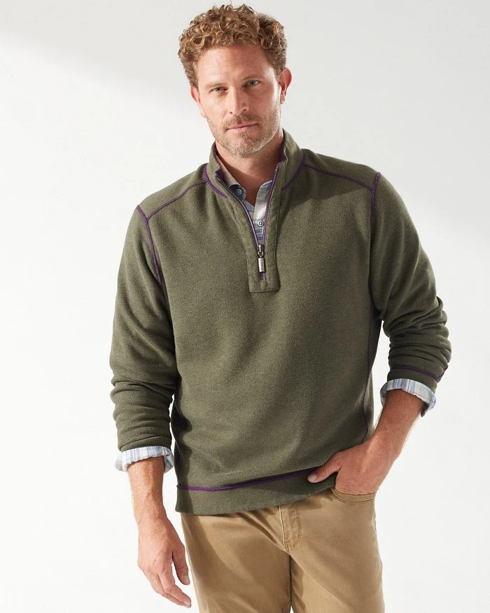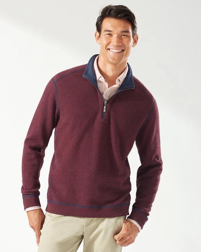 - Reversible half-zip pullover.