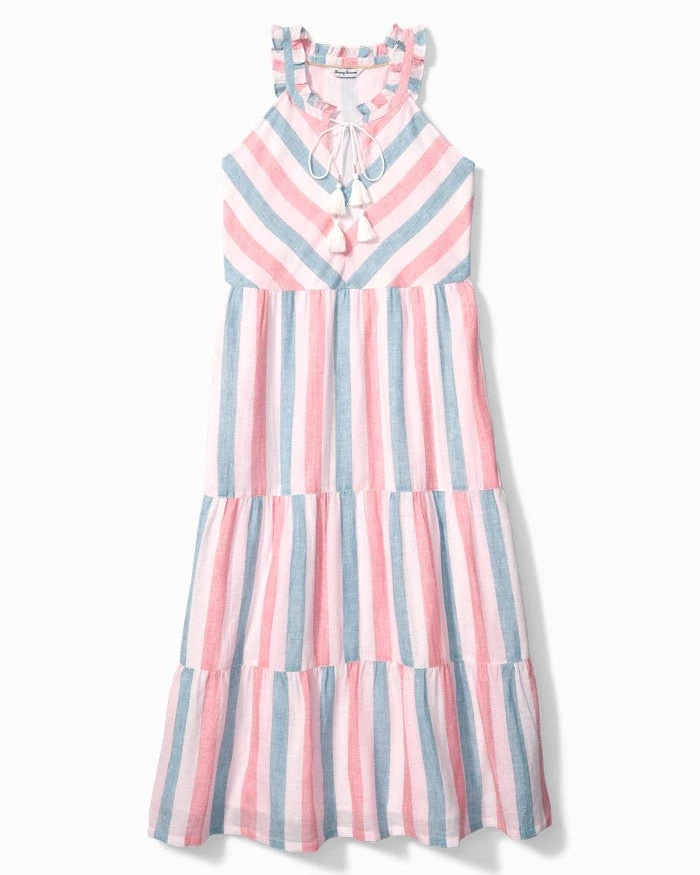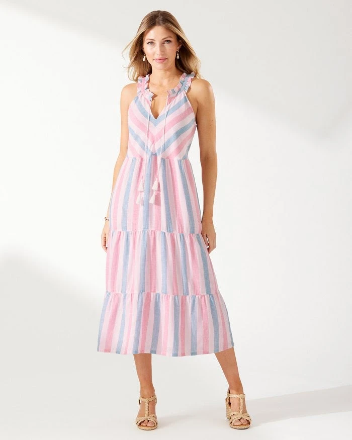 Meet your perfect summer sundress: the Lena Mallory Sun midi. Made with a soft, breathable linen-blend, this sundress features flattering vertical stripes and fun tassel detailing for unmatched sunny-day style.
