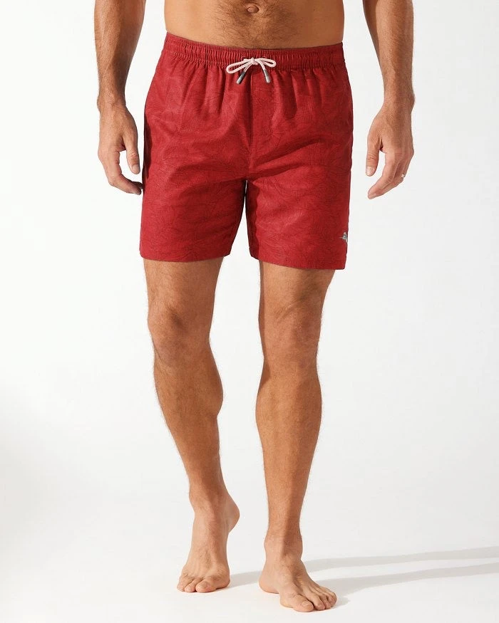 Add a touch of island style to your next beach day with the subtle print on these comfy swim trunks.