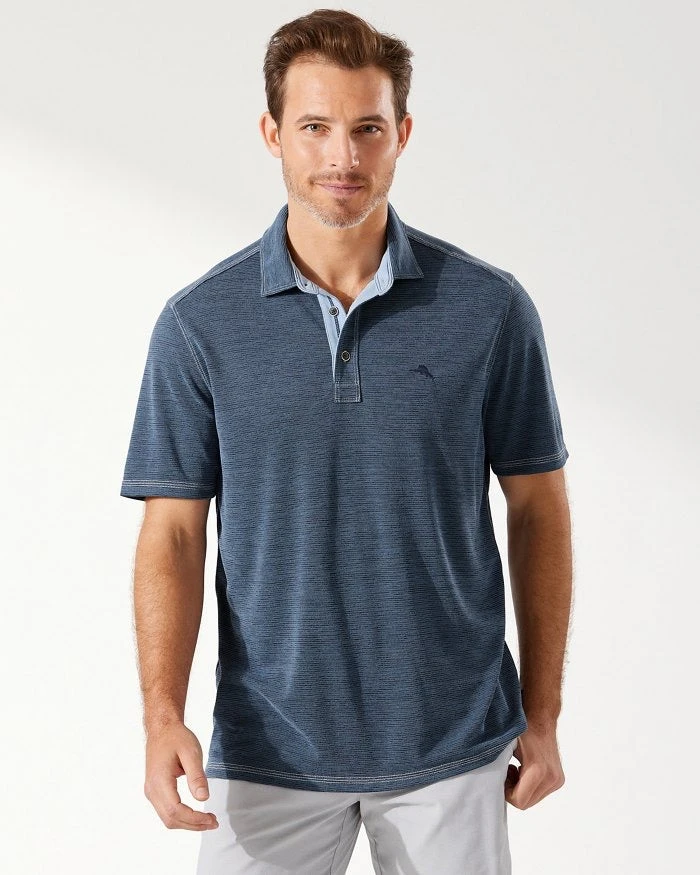 Stylish and soft to the touch—hit the links with this heathered polo that takes you all the way to the 18th hole without breaking a sweat.