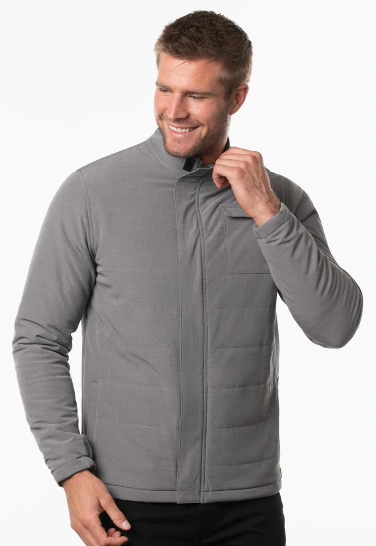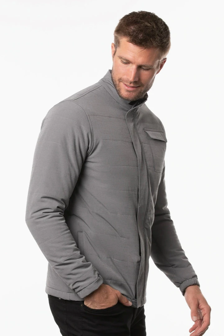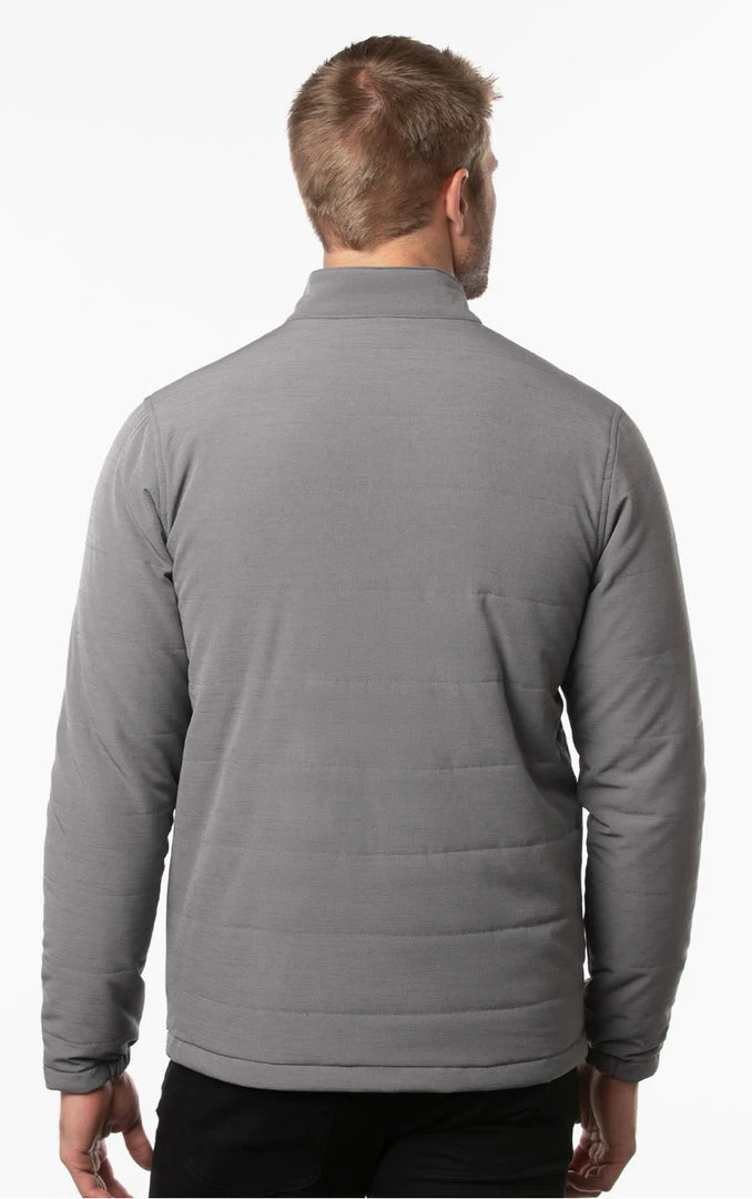 The CABIN IN THE WOODS full-zip puffer jacket features quilted design and a lightweight poly fill. The fabric has a natural texture with black ink-injected slubs for easy style no matter where life finds you.
