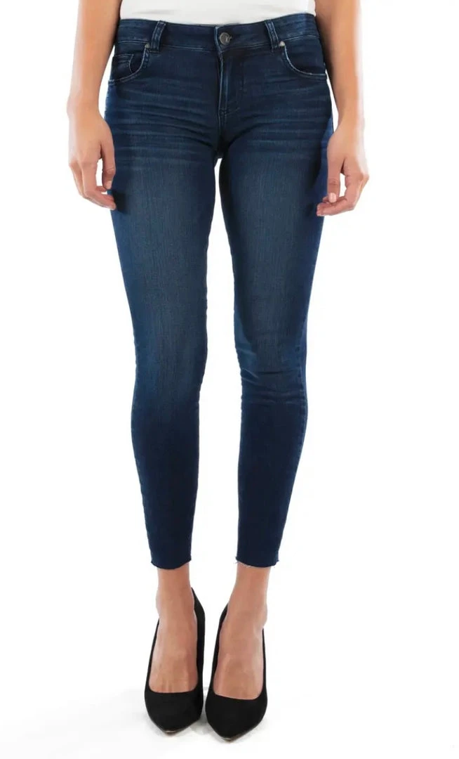 A raw ankle-length hem updates classic stretch-kissed skinnies you’ll wear everywhere.